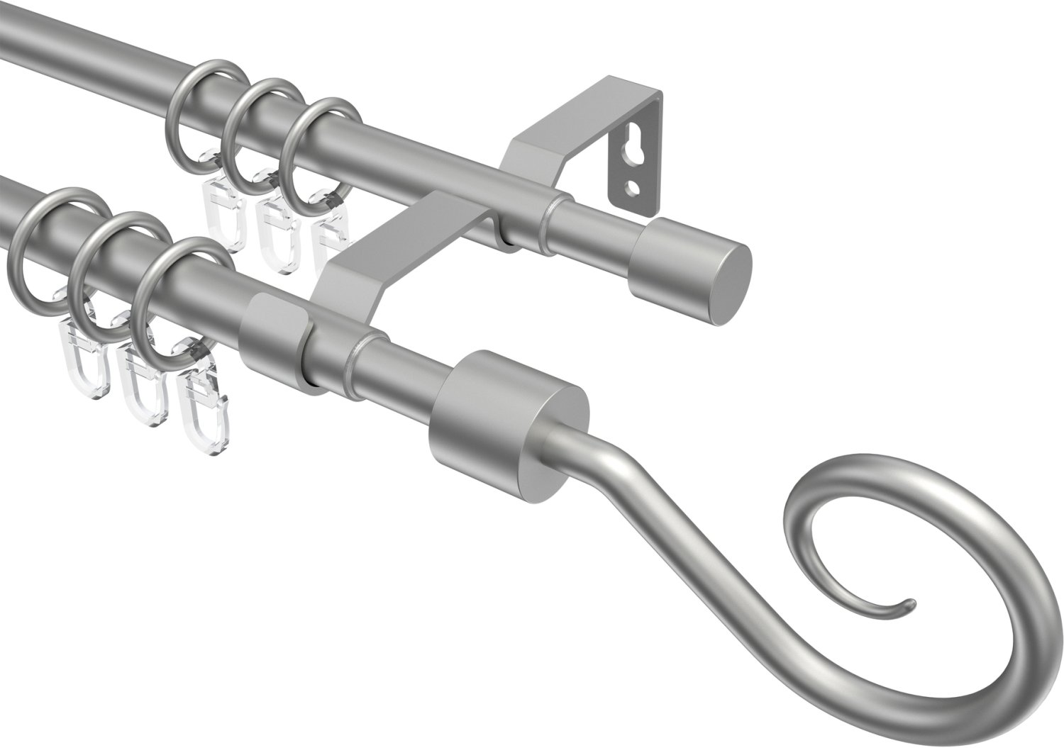 Wir bieten Ihnen hier eine qualitativ hochwertige ausziebare Vorhangstange mit 16 und 13 mm Ø aus Metall und Kunststoff in einem modernen und edlen Design an. Unsere doppelläufigen Vorhangstangen Modell HERA - Helix in Silbergrau zeichnen sich nicht nur durch den schönen Look, sondern auch durch die hohe Stabilität und einfacher Montage aus. Gerade die Verwendung hochwertiger Materialien machen diese Gardinenstangen zu Fensterdekorationen der Extraklasse. Sie können mit dieser Vorhangstange die Fenster sehr schön für die Gardinengestaltung in Szene setzen und nach Ihren Vorstellungen mit der Gardine dekorieren. Mit unserem Gardinenzubehör machen Sie Ihre Wohnräume lebendig. Mit den Vorhangstangen Modell HERA - Helix treffen Sie eine gute Wahl für das dekorative Anbringen der Gardinen und Vorhänge. Da wir unsere Gardinenstangen Modell HERA - Helix in vielen verfügbaren Längen anbieten können, wird es Ihnen leicht fallen, sämtliche Fenster mit dieser Vorhangstange auszustatten, ganz individuell und ganz nach Ihrem Geschmack. Die Befestigung von unserer Vorhangstange Modell HERA - Helix und anschließendem Anbringen der Gardinen ist sehr einfach vorzunehmen. Diese als komplett konfektionierte Sets angebotene Vorhangstangen beinhalten auch das benötigte Befestigungszubehör. Auch das erforderliche Gardinenzubehör zum Einhängen der Gardinen und Vorhänge befinden sich im Lieferumfang von unseren Gardinenstangen.