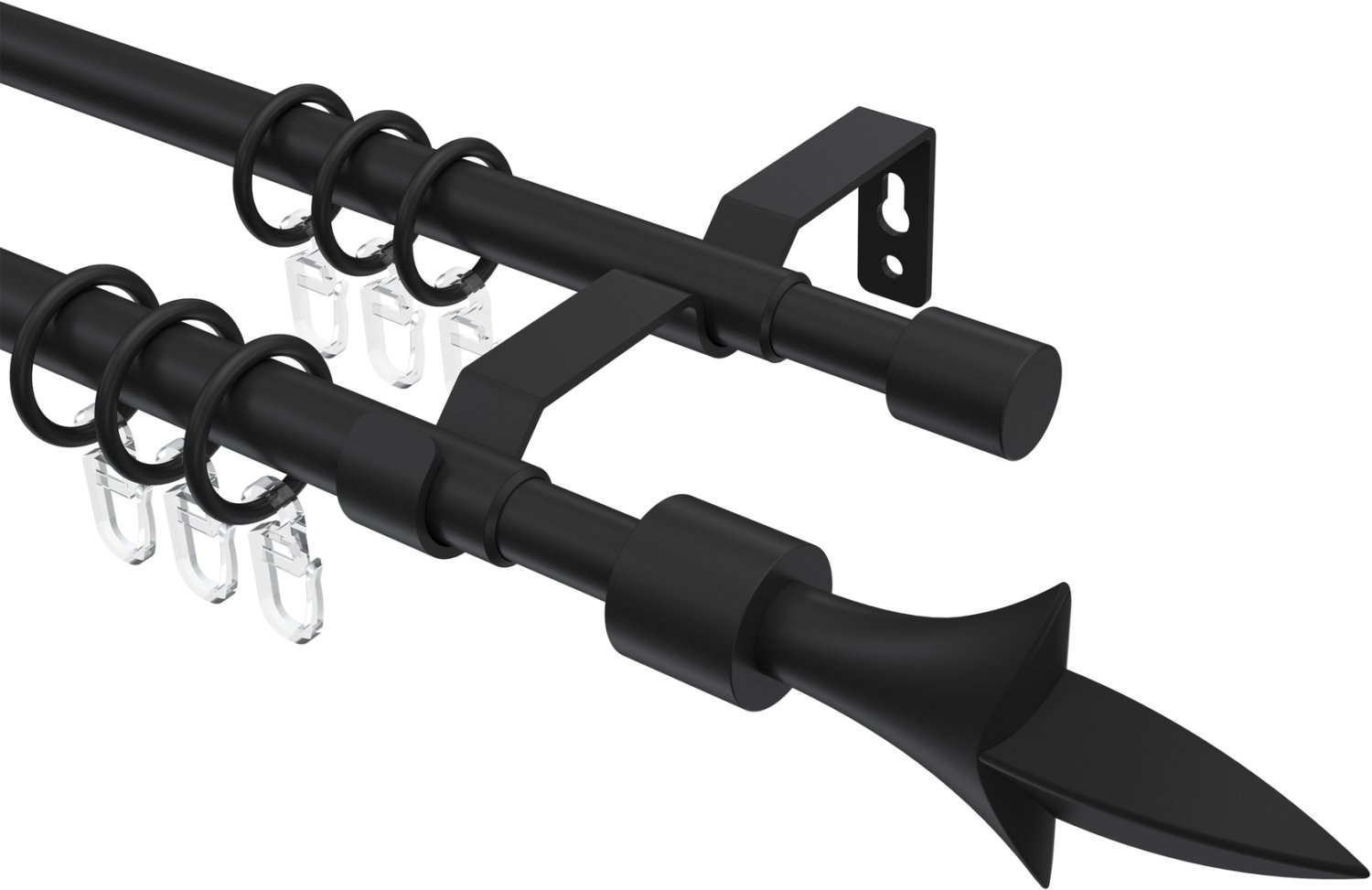 Gardinenstangen ausziehbar aus Metall / Kunststoff in 16/13 mm Ø, 2-läufig, Modell HERA - Lily Schwarz