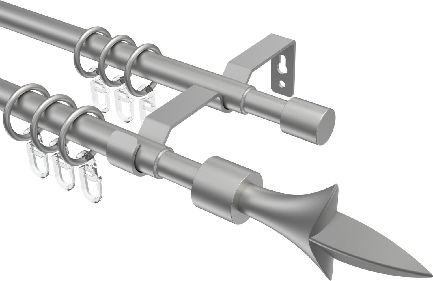 Die ausziebaren doppelläufigen Vorhanggarnituren Modell HERA - Lily mit 16 und 13 mm Ø sind hochwertige Produkte der Fensterdekoration und wurde aus Metall und Kunststoff hergestellt. Die hochwertige Verarbeitung und der moderne Stil sprechen für die Kombination der Gardinen mit unserer Vorhangstange in Silbergrau für Ihre Fenstergestaltung. Eine gute Stabilität und gerade durch die Verwendung hochwertiger Materialen wie in diesem Fall Metall und Kunststoff, wird außerdem eine hohe Langlebigkeit dieser Produkte erreicht. Diese dekorative doppelläufige Vorhangstange wird gerne für Raumgestaltung mit modernen Gardinen verwendet. Befestigen Sie Ihre Fensterdekoration an unseren Vorhanggarnituren Modell HERA - Lily. Die große Auswahl an den unterschiedlichsten Größen tragen dazu bei, dass unsere Vorhangstange an vielen Fenstern angebracht werden kann. Die Befestigung von unseren Vorhanggarnituren Modell HERA - Lily und anschließendem Anbringen der Gardinen ist sehr einfach vorzunehmen. Diese als komplett konfektioniertes Set angebotene Vorhangstange beinhaltet auch das benötigte Befestigungszubehör. Auch das erforderliche Gardinenzubehör zum Einhängen der Gardinen und Vorhänge befinden sich im Lieferumfang von unserer Vorhangstange.