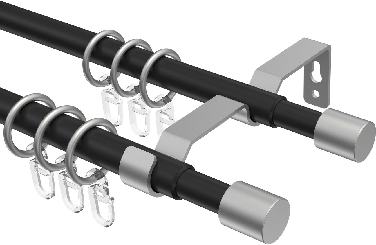 Gardinenstangen ausziehbar aus Metall / Kunststoff in 16/13 mm Ø, 2-läufig, Modell HERA - Livo Schwarz / Silbergrau