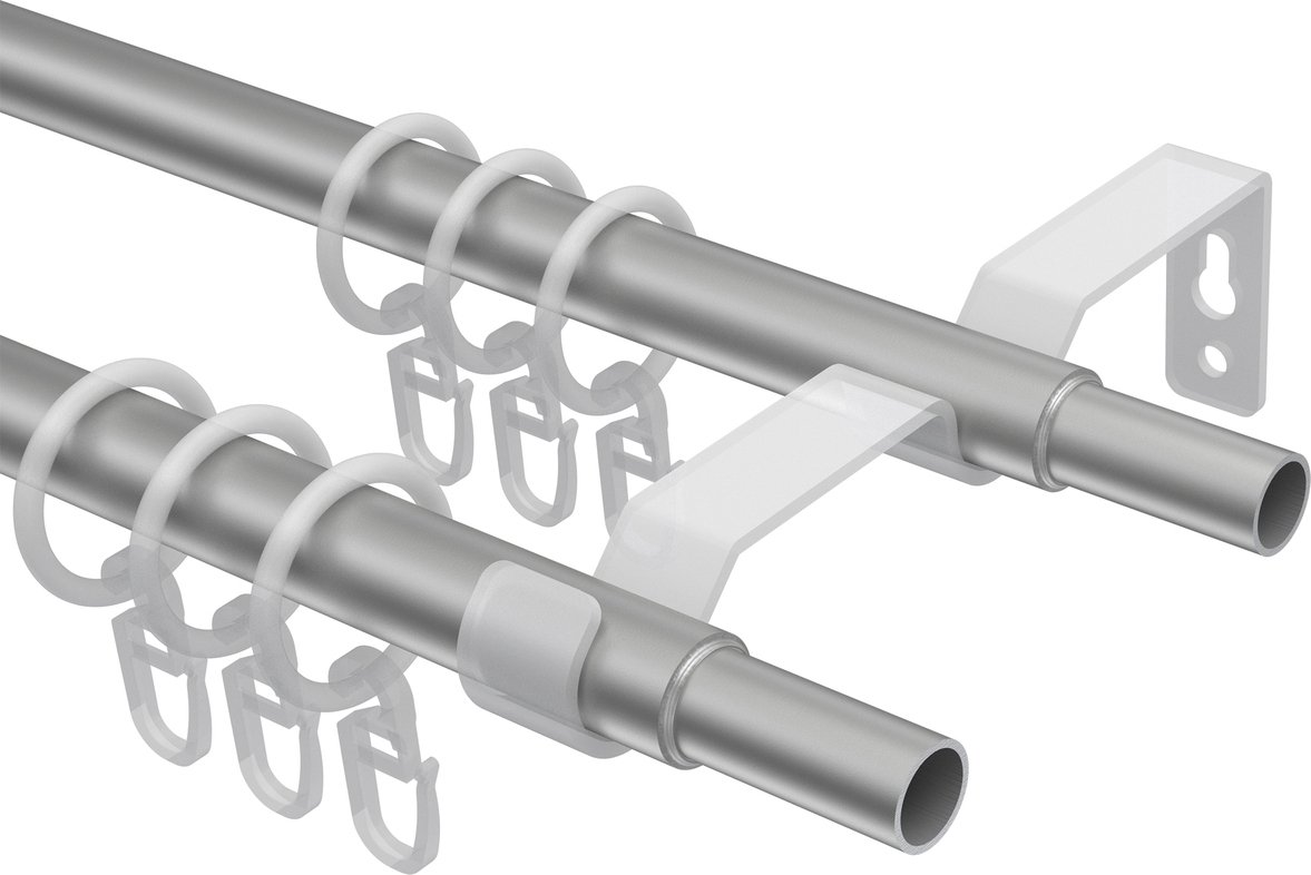 Mit dieser doppelläufigen ausziebaren Gardinenstange Modell HERA - Livo mit 16 und 13 mm Ø aus Metall und Kunststoff treffen Sie eine gute Wahl, wenn Sie den Wohnraum insbesondere die Fensterdekoration umgestalten oder neu ausstatten möchten. Die hier ausgewählte Vorhangstange in Schwarz / Silbergrau ist ein hochwertiges Produkt der Gardinendekoration. Diese Gardinenstange Modell HERA - Livo wurde erstklassig unter Verwendung hochwertiger Materialien verarbeitet und verfügt zugleich über eine schönes, edles und modernes Erscheinungsbild. Wir bieten Ihnen die Gardinenstange in den verschiedensten Größen an, so dass Sie die Möglichkeit haben, jeden Raum individuell mit diesem Produkt und passenden Gardinen und Vorhängen zu gestalten. Lassen auch Sie sich durch unser Sortiment an Gardinen-Zubehör inspirieren. Das Befestigen der Gardinen und Vorhänge wird Ihnen mit dieser Vorhangstange ganz leicht gemacht. Diese Gardinenstange Modell HERA - Livo lässt sich ohne viel Aufwand montieren. Auch das anschließende Aufhängen der Gardinen ist ausgesprochen unkompliziert und einfach zu handhaben. Das Angebot von dieser Vorhangstange enthält ein komplett konfektioniertes Set inklusive des Befestigungszubehörs. Auch das zum Anbringen der Gardinen und Vorhänge benötigte Gardinenzubehör ist im Lieferumfang von unserer Gardinenstange inbegriffen.
