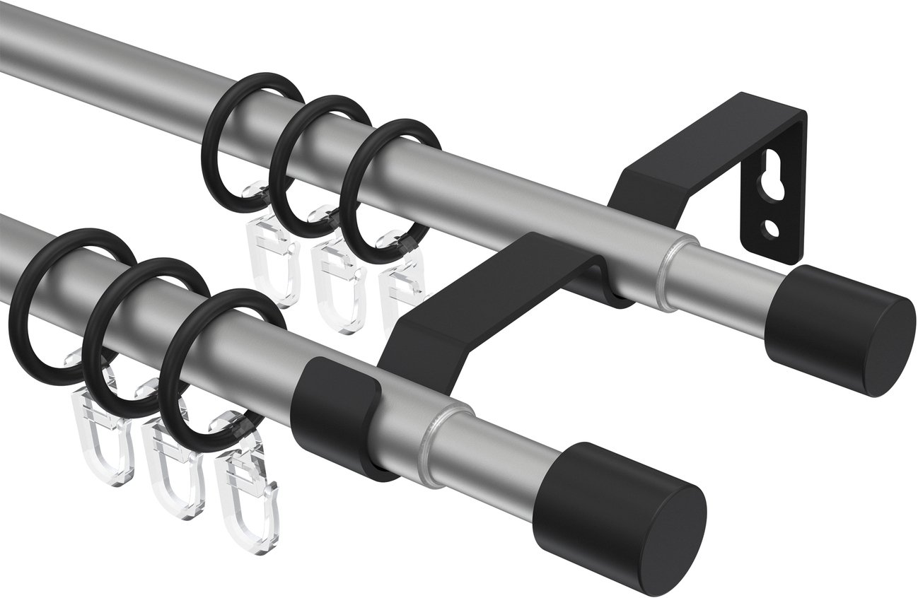 Informationen zu Ausziehbare Gardinenstange Metall / Kunststoff 16/13 mm 2-läufig Ø HERA - Livo Silbergrau / Schwarz: