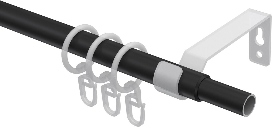 Gardinenstangen ausziehbar aus Metall / Kunststoff in 16/13 mm Ø, 2-läufig, Modell HERA - Livo Silbergrau / Schwarz