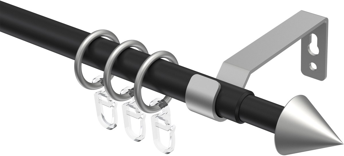 Gardinenstangen ausziehbar aus Metall / Kunststoff in 16/13 mm Ø, 1-läufig, Modell HERA - Cone Schwarz / Silbergrau
