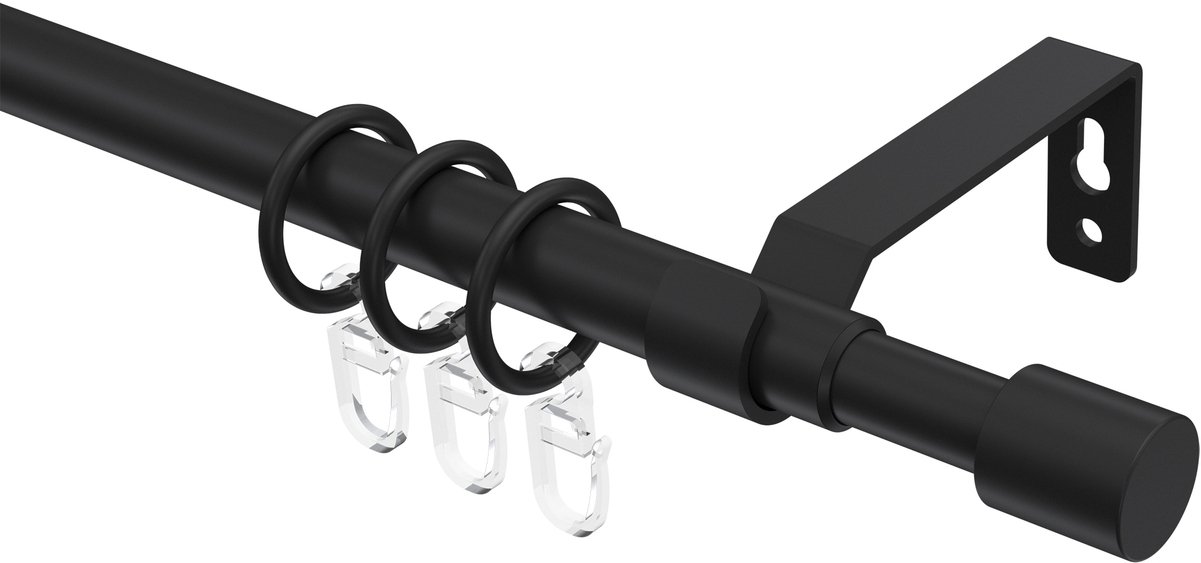Gardinenstangen ausziehbar aus Metall / Kunststoff in 16/13 mm Ø, 1-läufig, Modell HERA - Livo Schwarz