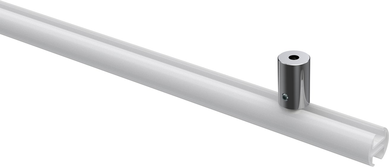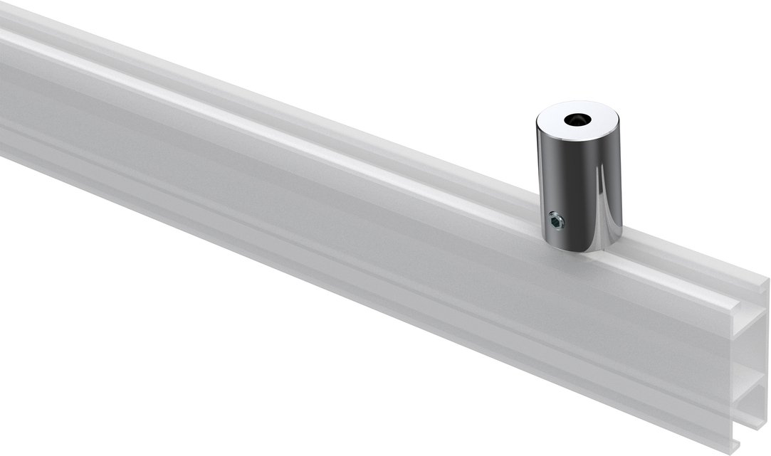 Für die Deckenmontage von Innenlaufstangen mit sind spezielle Deckenträger erforderlich. Dieser Deckenträger Modell Sonius ist ein kleiner Innenlaufträger ganz speziell für die Deckenmontage der Innenlaufprofile 20 mm Ø und 14x35 mm. Eine Deckenhalterung wie dieser Träger in Chrom kann zur Erweiterung und zu einer besonderen Stabilisierung einer 1-läufigen Innenlaufstange aus dem Interdeco-Sortiment verwendet werden. Die originalen Träger Modell Sonette sind auf die technischen Eigenschaften der Innenlaufstangen von Interdeco abgestimmt und angepasst.