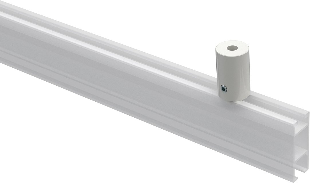 Mit dem Deckenträger Sonius kann eine Innenlaufstange mit dem Stangendurchmesser von 20 mm und eckigem Innenlaufprofil 14x35 mm besonders einfach und zugleich stabil unter der Decke montiert werden. Eine Halterung wie dieser Deckenträger in Weiß wird einfach unter die Decke geschraubt. Der kleine Einsatz für die Laufnut wird mit einer Madenschraube fest in den Träger hineingezogen, so dass das Innenlaufprofil sicht am Träger fixiert wird. Die Träger Sonius sind ganz speziell für die Innenlaufprofile aus dem Sortiment von Interdeco bestimmt und darauf abgestimmt.