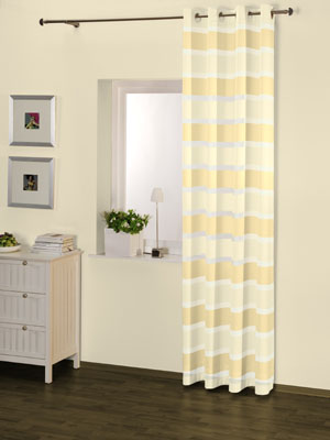 Eine Mischung aus blickdichten, beigen und transparenten Streifen auf Organzabasis machen aus diesem Ösenschal ein modernes Wohnaccessior. Sehr elegant und leicht wirkt diese Gardine durch die schimmernde Taftoptik.