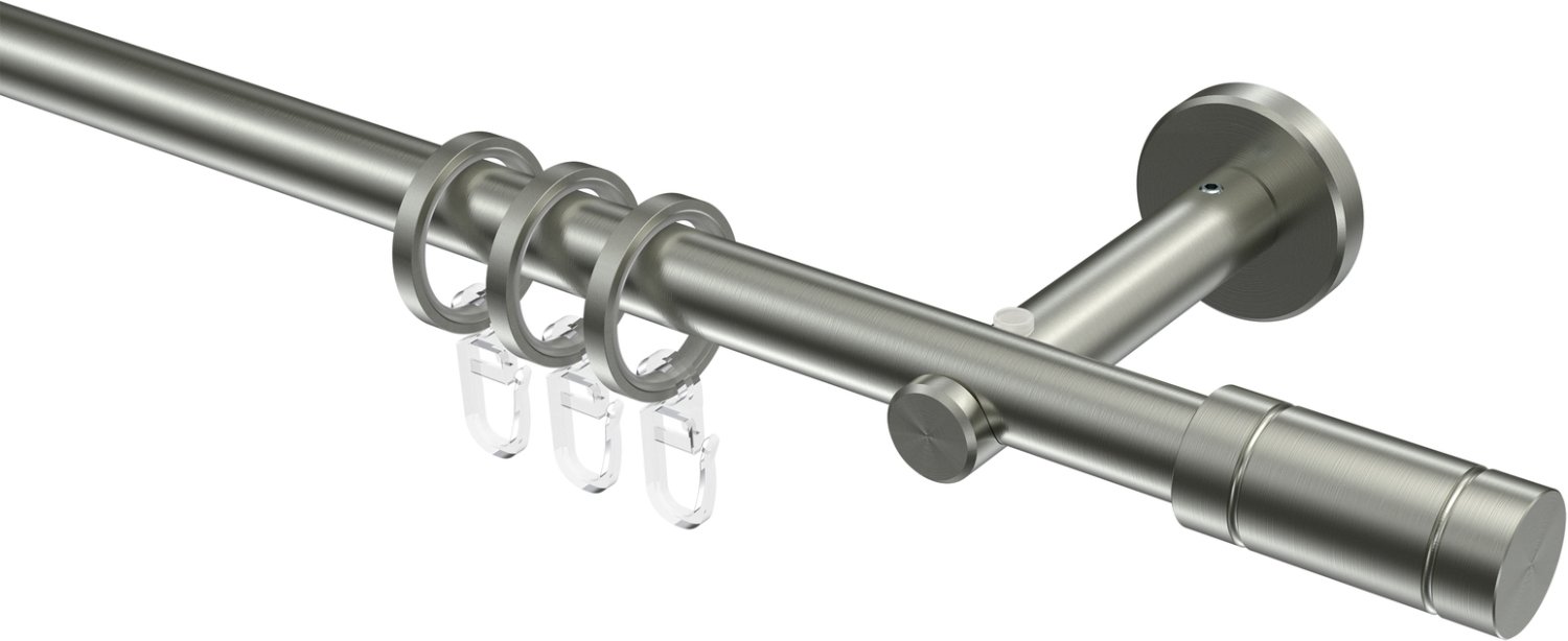 Stilvoll und modern, passen sich unsere einläufigen Stilgarnituren Modell MEDIUM - Jolly mit 16 mm Ø jedem Raum mit den unterschiedlichsten Einrichtungsstilen an. Die erstklassige Verarbeitung von unseren einläufigen Stilgarnituren sowie die Verwendung von hochwertigen Materialien wie Edelstahl bei diesem Produkt verweist auf eine gute Stabilität sowie eine lange Lebensdauer. Das moderne Design von diesen Vorhangstangen wird bei der Fensterdekoration neben den Gardinen eine ganz besondere Rolle spielen. Setzen Sie bei der Fenstergestaltung Ihre eigenen Ideen um und verwenden Sie zum Anbringen der Gardinen unsere Stilgarnituren in Edelstahl. Unsere Stilgarnituren Modell MEDIUM - Jolly können über vielen Fenstern und Balkontüren unterschiedlichster Breiten angebracht werden, da wir diese in vielen unterschiedlichen Größen anbieten.