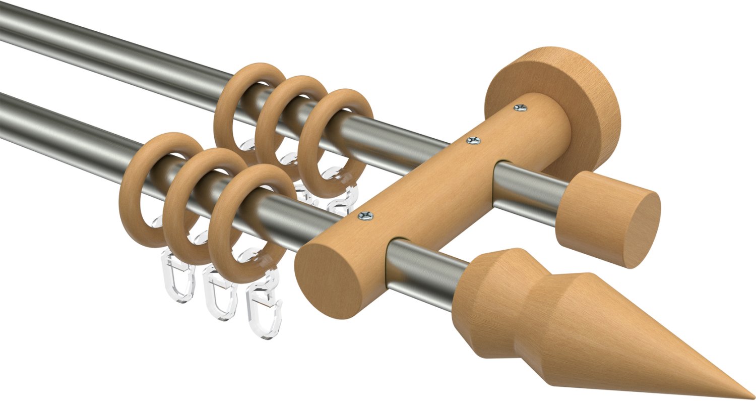 Informationen zu Gardinenstange Edelstahl / Holz Buche lackiert 16 mm Ø 2-läufig ADRIAN - Doman: