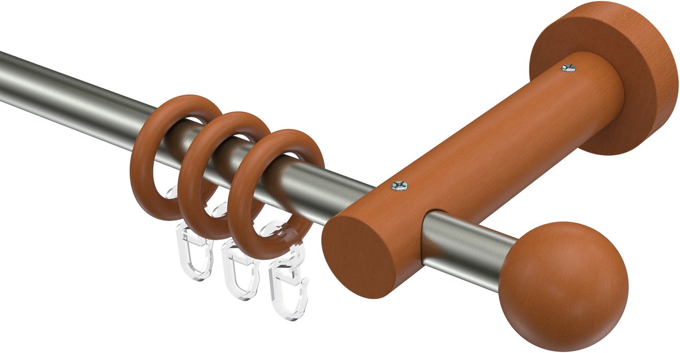Gardinenstangen aus Edelstahl / Holz Kirschbaum lackiert in 16 mm Ø, 1-läufig, Modell ADRIAN - Geo