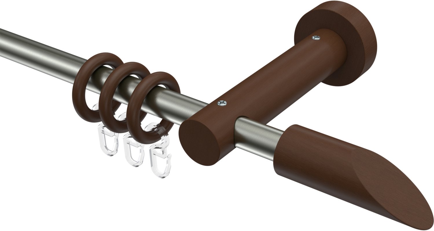 Gardinenstangen aus Edelstahl / Holz Nussbaum lackiert in 16 mm Ø, 1-läufig, Modell ADRIAN - Franca