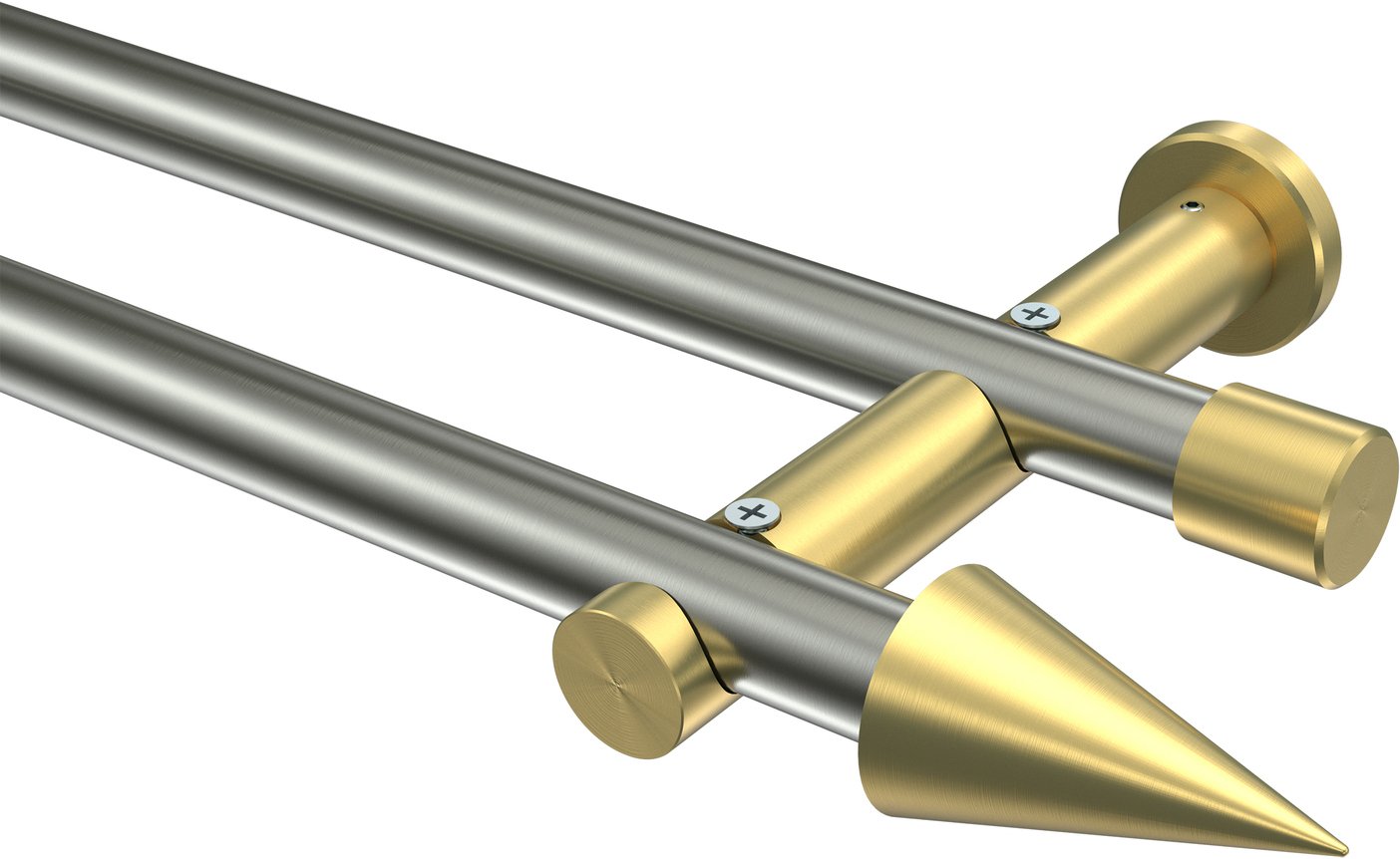 Informationen zu Gardinenstange Edelstahl-Optik / Messing-Optik 20 mm Ø 2-läufig PLATON - Savio (ohne Ringe):