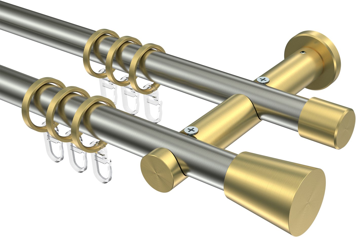 Gardinenstangen aus Edelstahl-Optik / Messing-Optik in 20 mm Ø, 2-läufig, Modell PLATON - Sitra