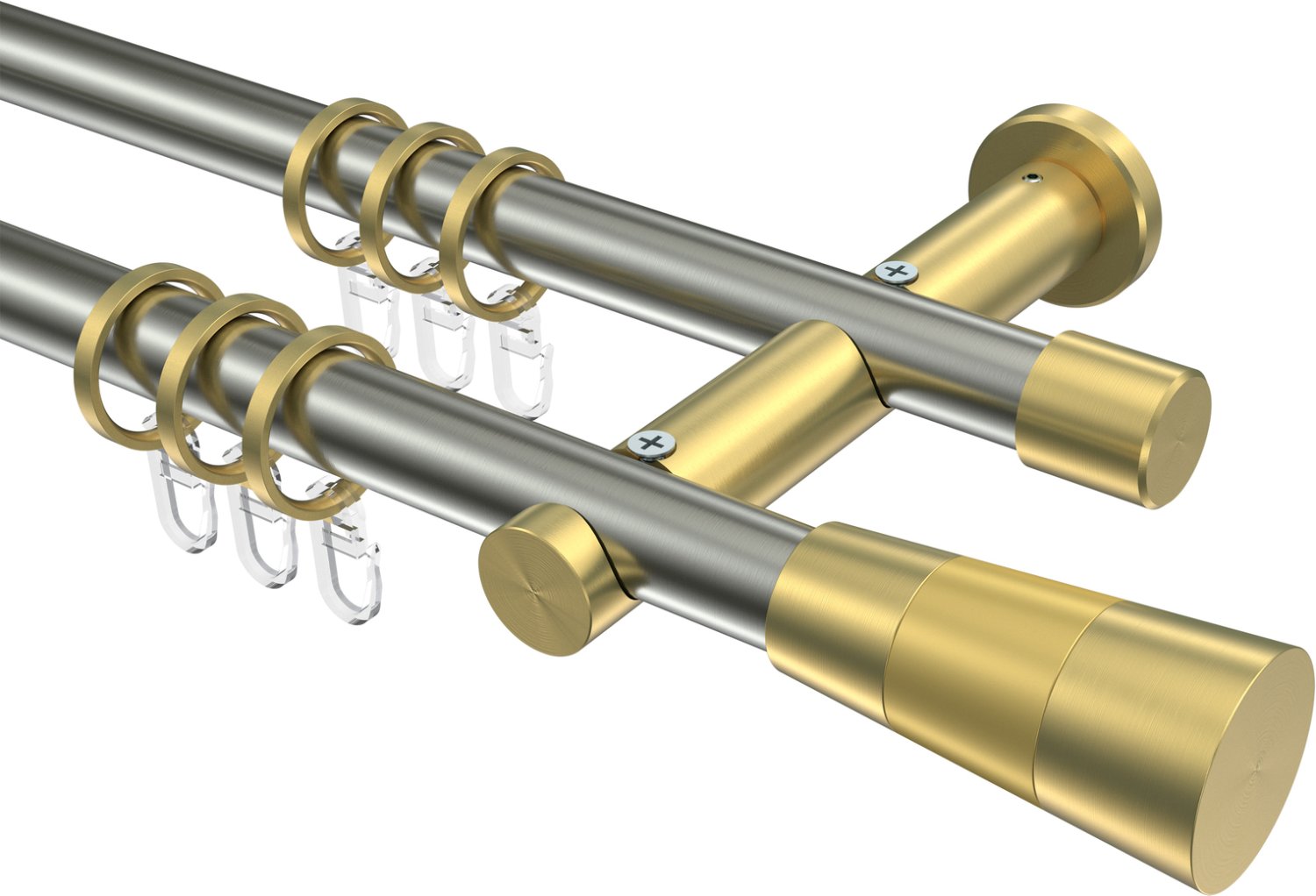 Gardinenstangen aus Edelstahl-Optik / Messing-Optik in 20 mm Ø, 2-läufig, Modell PLATON - Tanara