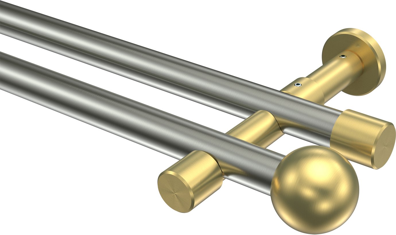 Informationen zu Gardinenstange Edelstahl-Optik / Messing-Optik 20 mm Ø 2-läufig PRESTIGE - Luino (ohne Ringe):