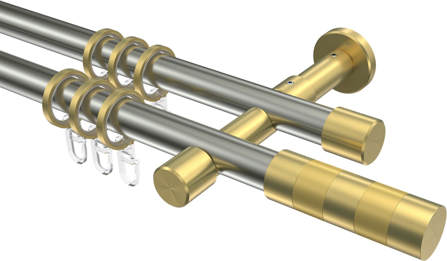Informationen zu Gardinenstange Edelstahl-Optik / Messing-Optik 20 mm Ø 2-läufig PRESTIGE - Mavell: