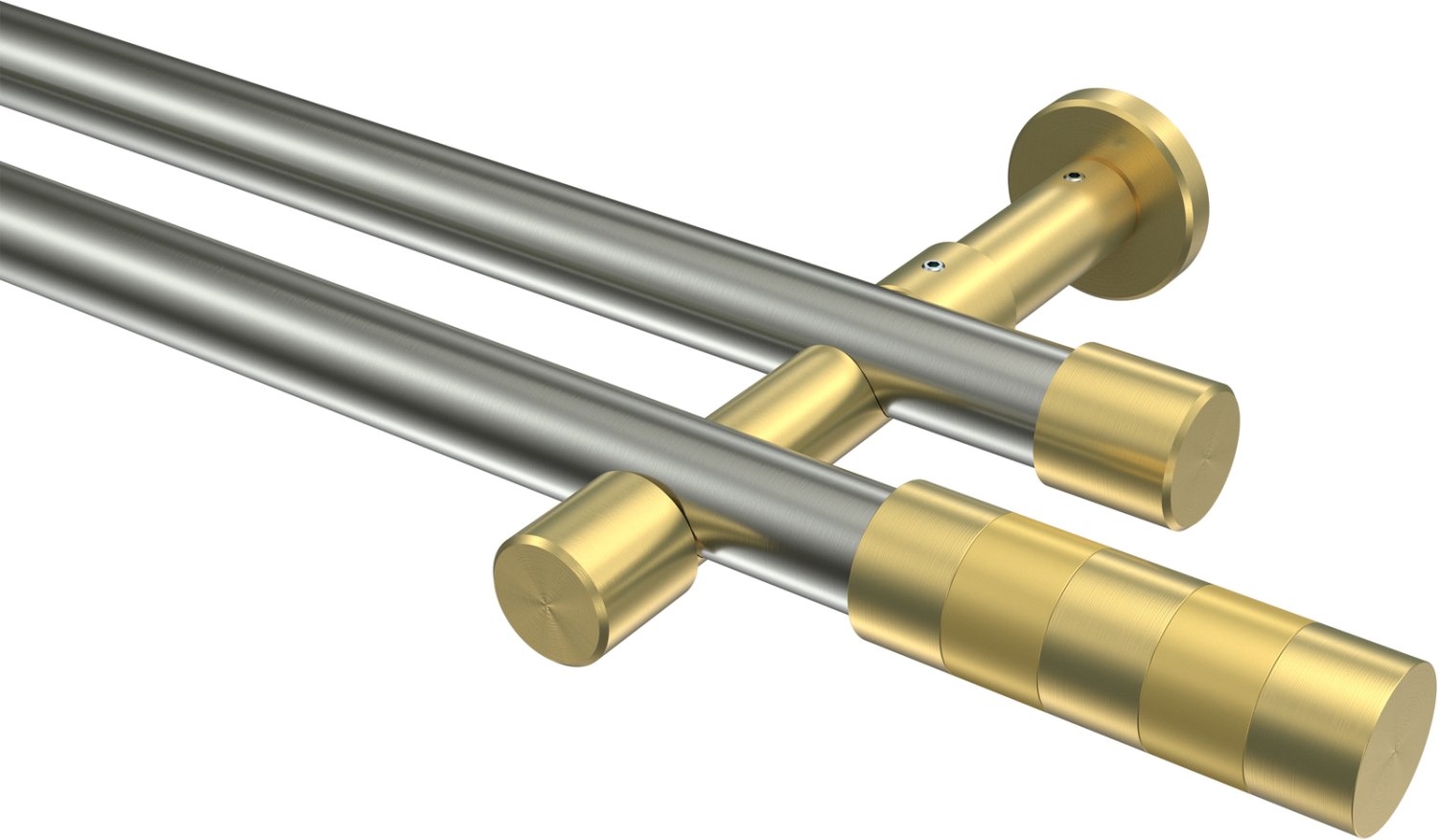Gardinenstangen aus Edelstahl-Optik / Messing-Optik in 20 mm Ø, 2-läufig, 2-läufig, Modell PRESTIGE - Mavell (ohne Ringe)