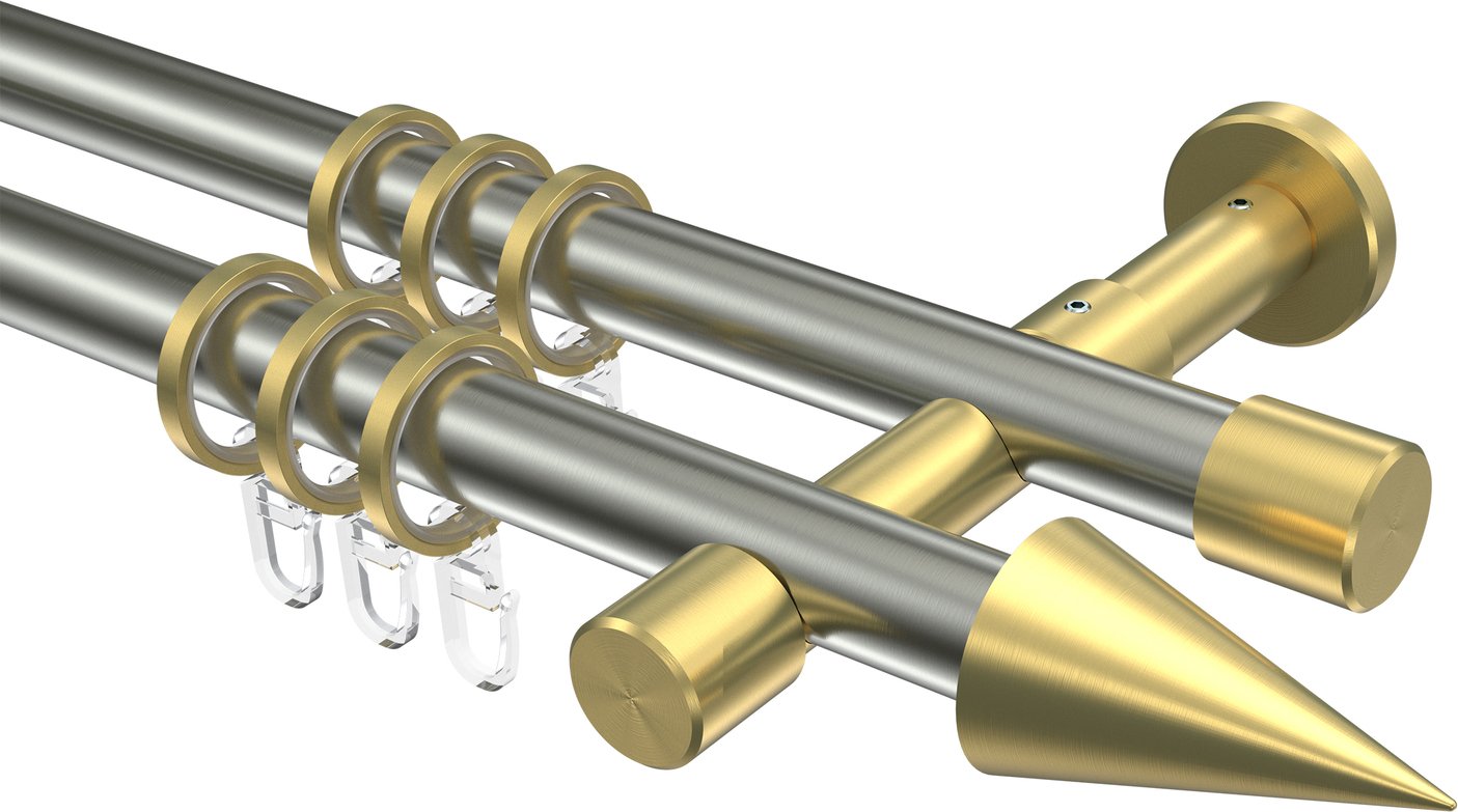 Gardinenstangen aus Edelstahl-Optik / Messing-Optik in 20 mm Ø, 2-läufig, Modell PRESTIGE - Savio