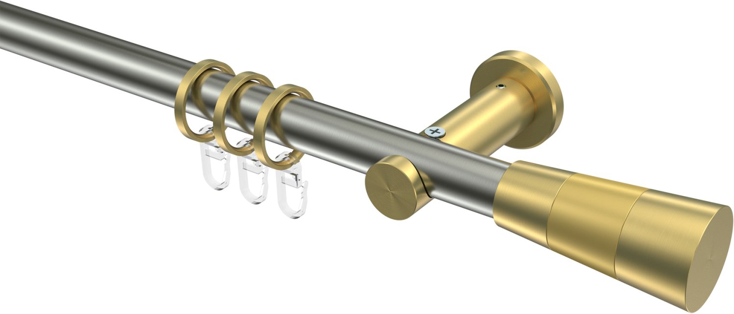 Gardinenstangen aus Edelstahl-Optik / Messing-Optik in 20 mm Ø, 1-läufig, Modell PLATON - Tanara
