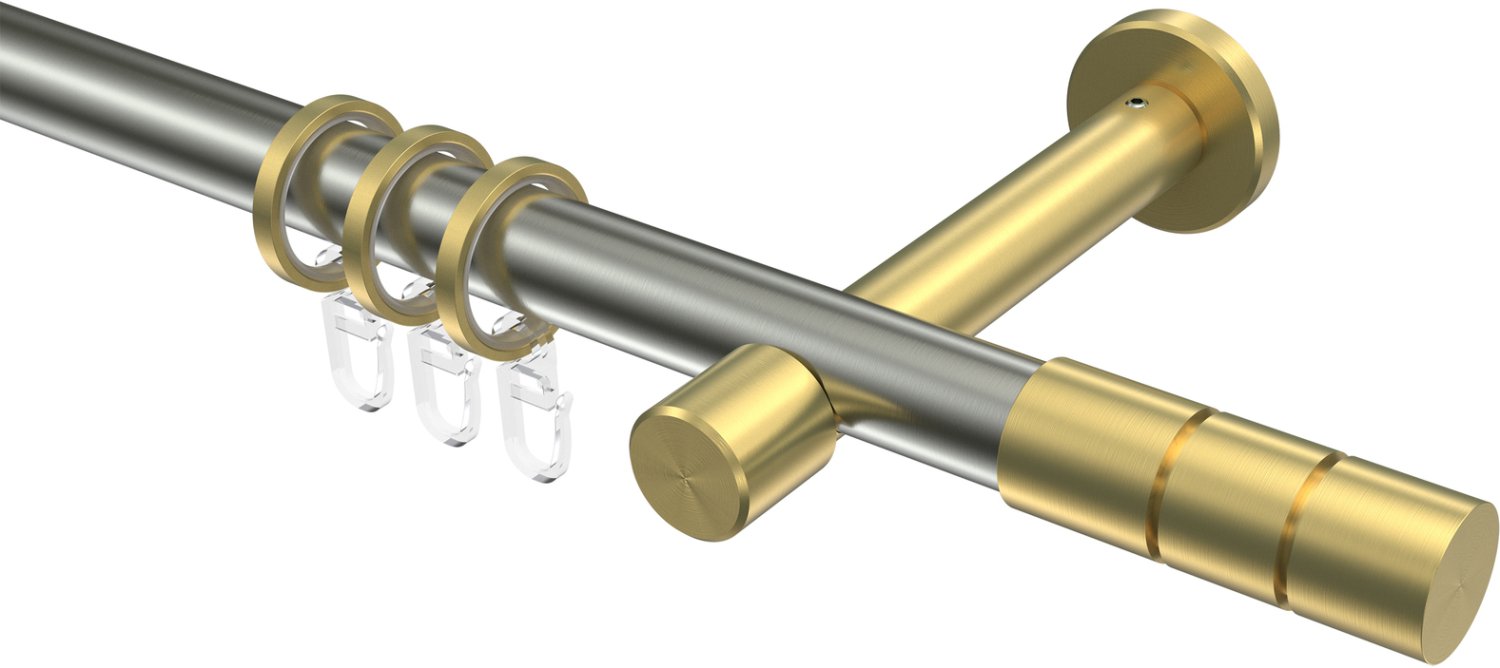 Gardinenstangen aus Edelstahl-Optik / Messing-Optik in 20 mm Ø, 1-läufig, Modell PRESTIGE - Elanto