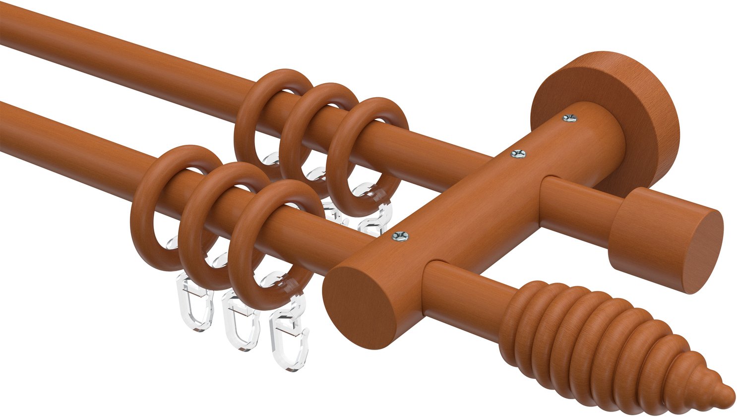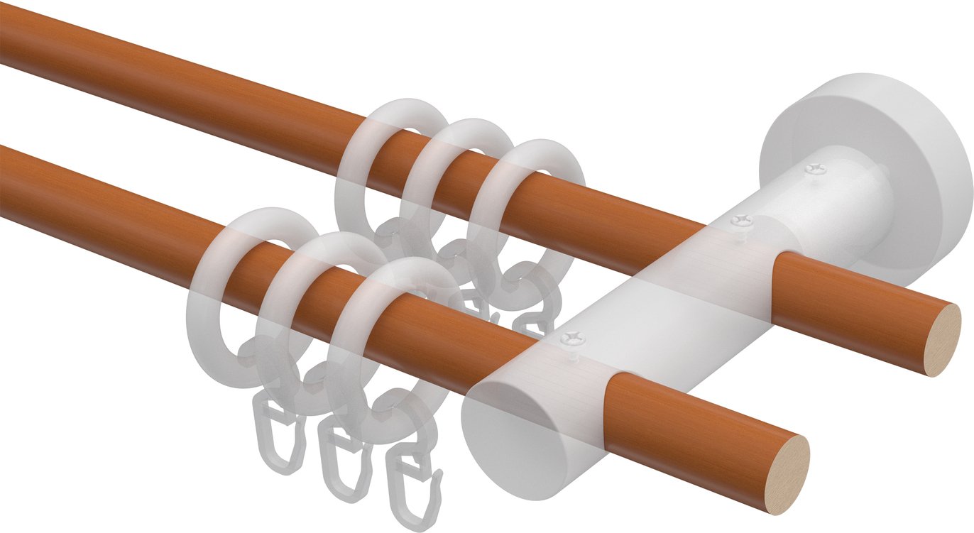 Gardinenstangen aus Holz in 16 mm Ø, 2-läufig, Modell ADRIAN - Asta Kirschbaum lackiert