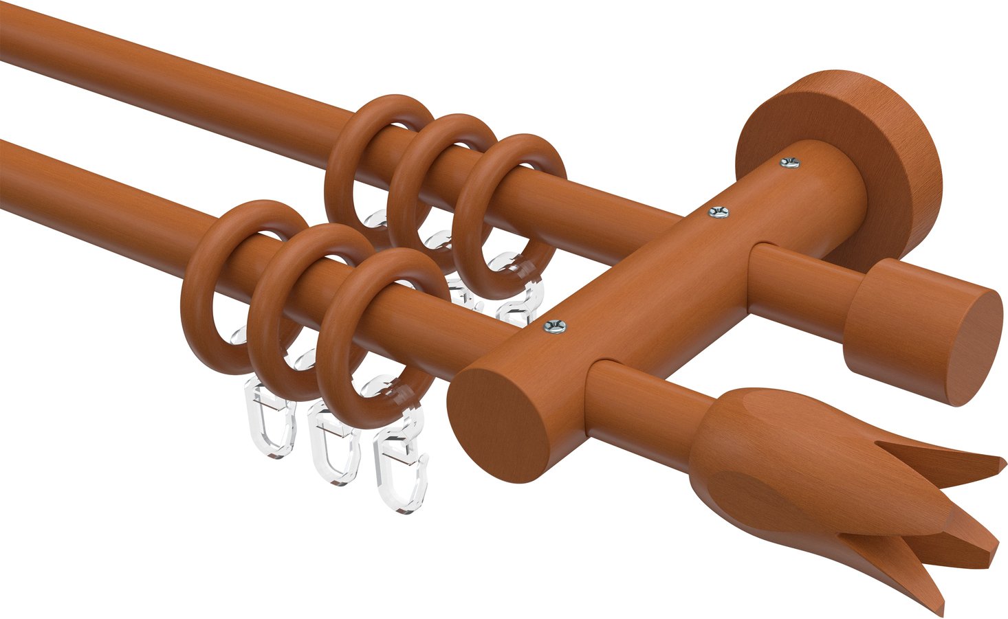 Informationen zu Gardinenstange Holz 16 mm Ø 2-läufig ADRIAN - Flower Kirschbaum lackiert: