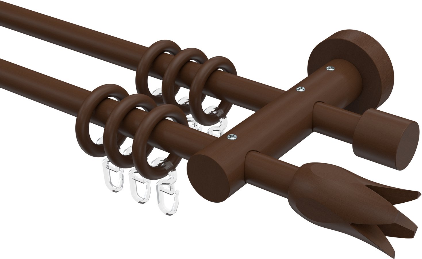 Gardinenstangen aus Holz in 16 mm Ø, 2-läufig, Modell ADRIAN - Flower Nussbaum lackiert