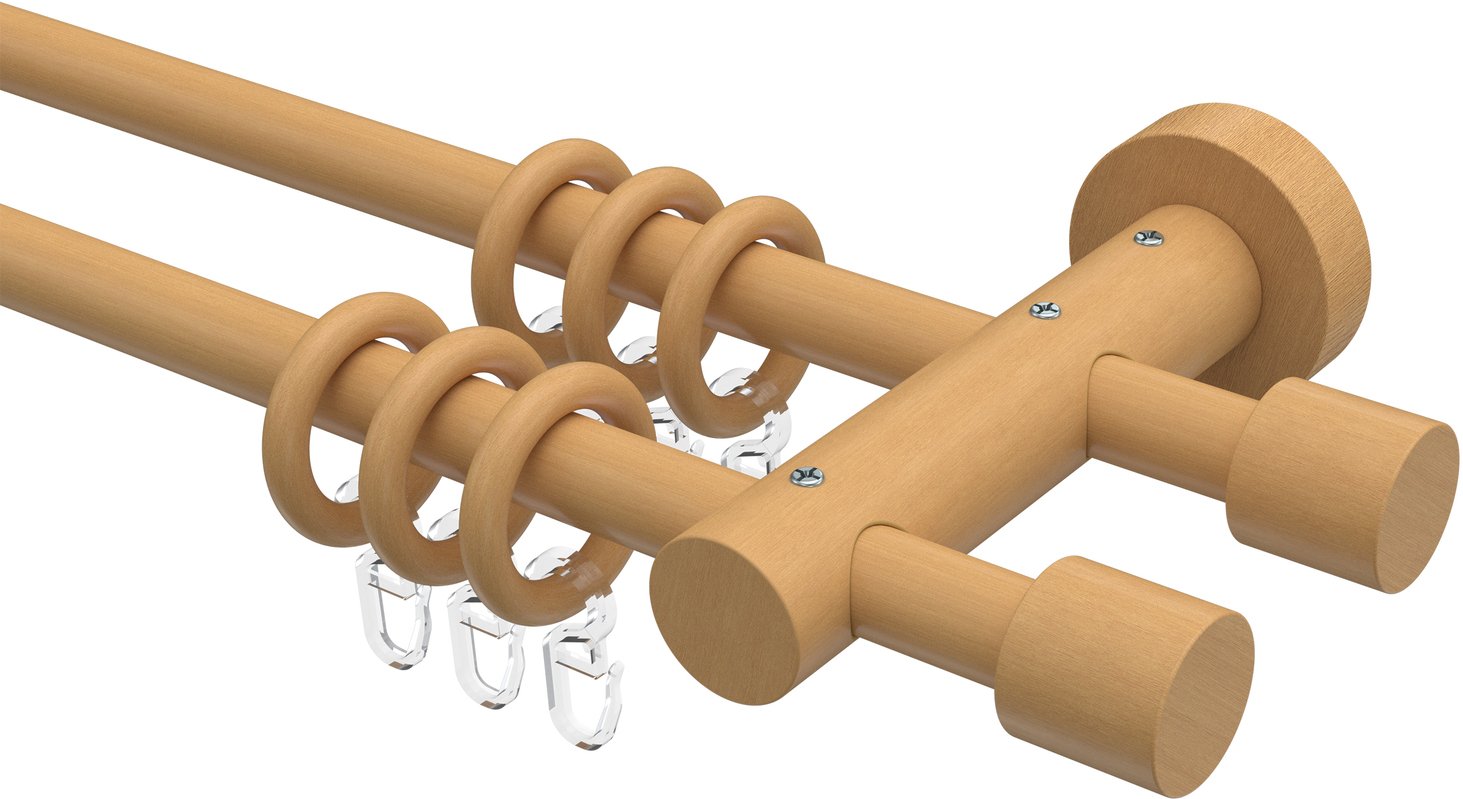 Gardinenstangen aus Holz in 16 mm Ø, 2-läufig, Modell ADRIAN - Pin Buche lackiert