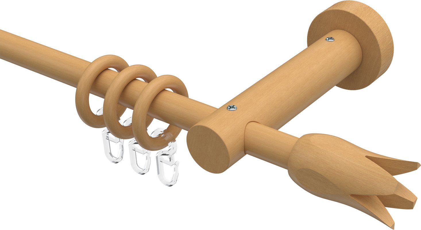 Gardinenstangen aus Holz in 16 mm Ø, 1-läufig, Modell ADRIAN - Flower Buche lackiert