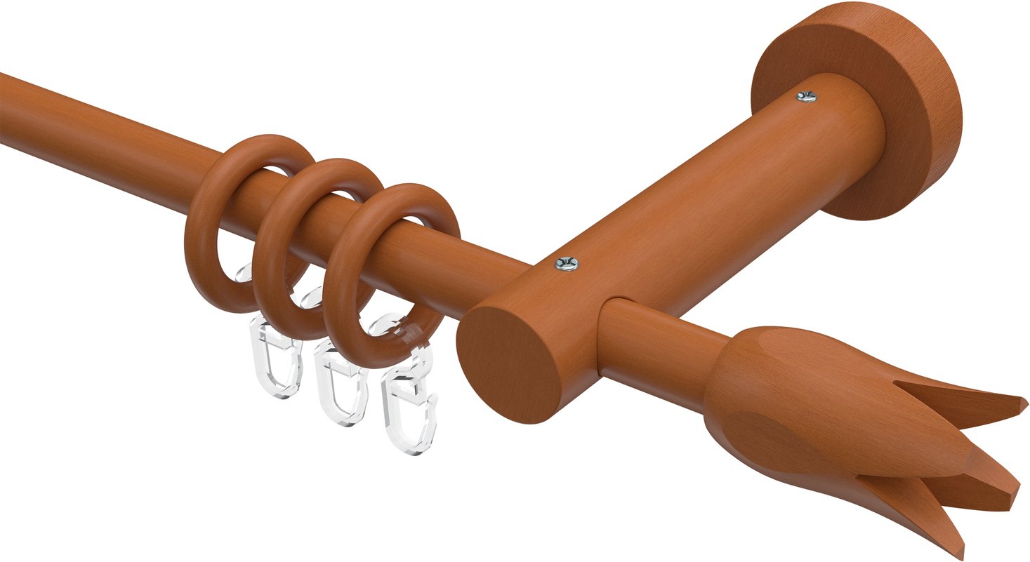 Gardinenstangen aus Holz in 16 mm Ø, 1-läufig, Modell ADRIAN - Flower Kirschbaum lackiert