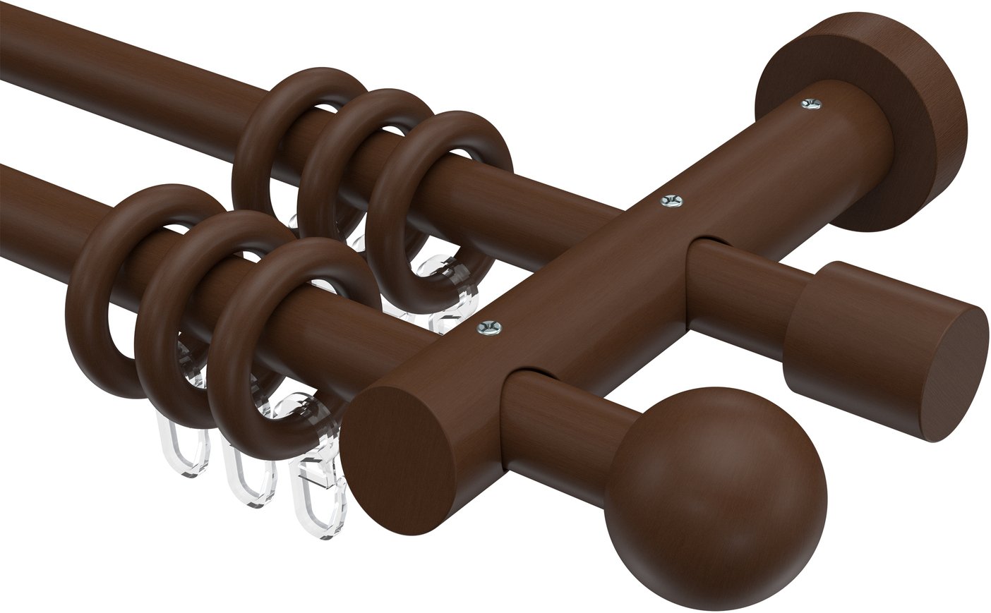 Gardinenstangen aus Holz in 20 mm Ø, 2-läufig, Modell TALENA - Luina Nussbaum lackiert