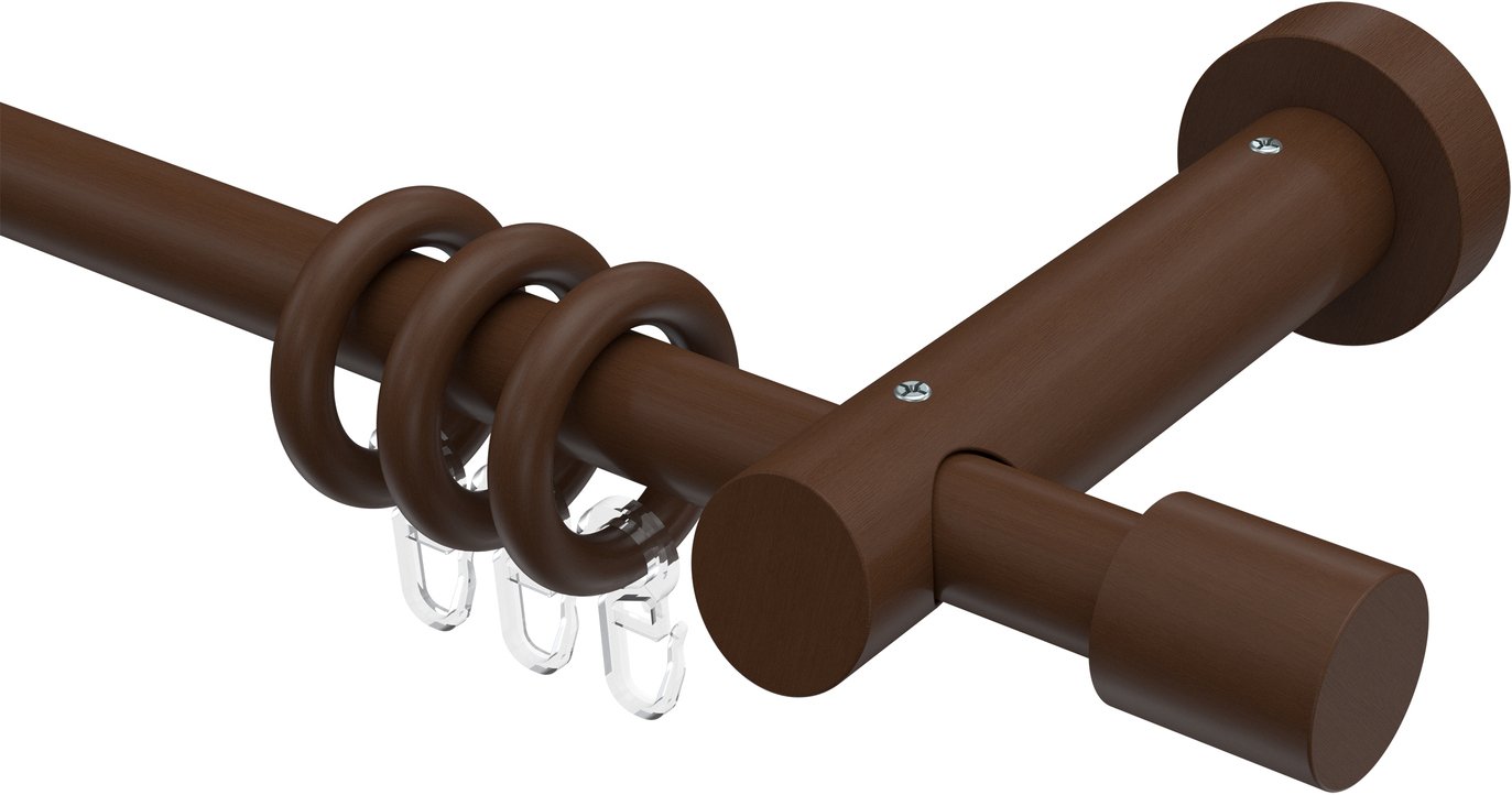 Gardinenstangen aus Holz in 20 mm Ø, 1-läufig, Modell TALENA - Feta Nussbaum lackiert