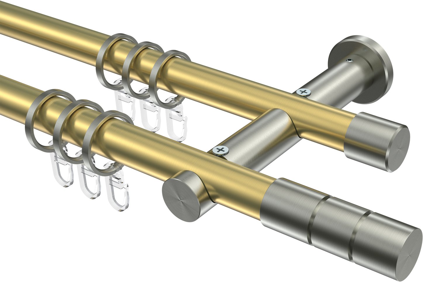 Gardinenstangen aus Messing-Optik / Edelstahl-Optik in 20 mm Ø, 2-läufig, Modell PLATON - Elanto