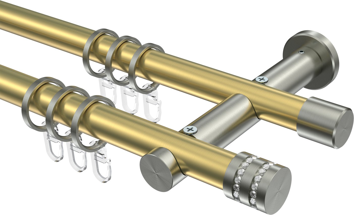 Gardinenstangen aus Messing-Optik / Edelstahl-Optik in 20 mm Ø, 2-läufig, Modell PLATON - Estana
