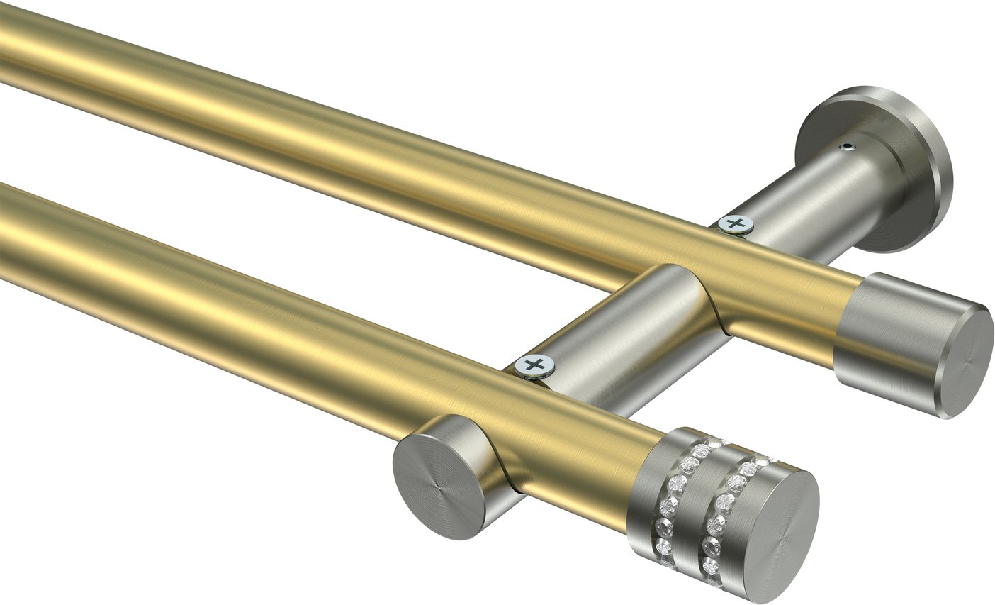 Gardinenstangen aus Messing-Optik / Edelstahl-Optik in 20 mm Ø, 2-läufig, 2-läufig, Modell PLATON - Estana (ohne Ringe)