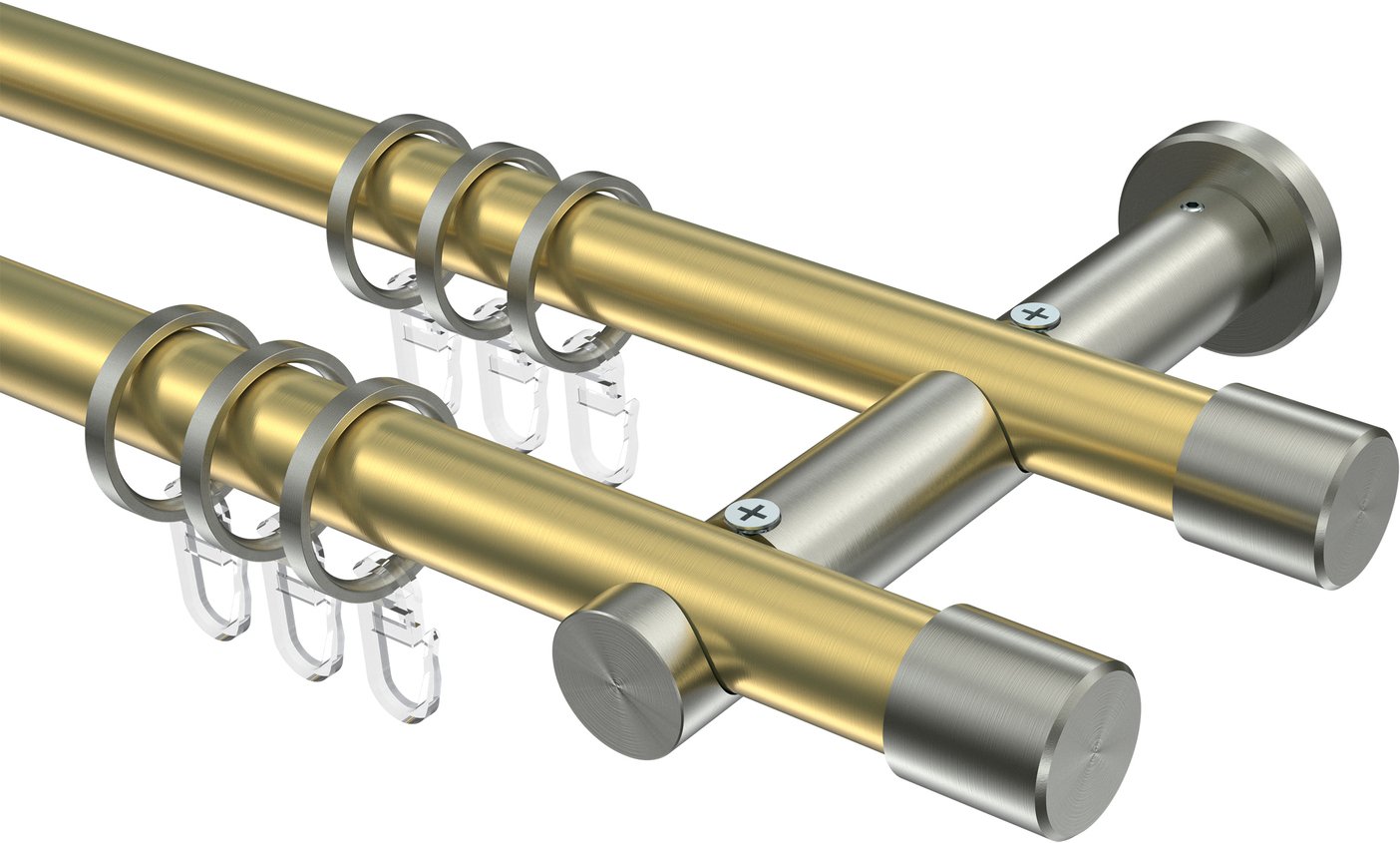 Gardinenstangen aus Messing-Optik / Edelstahl-Optik in 20 mm Ø, 2-läufig, Modell PLATON - Santo