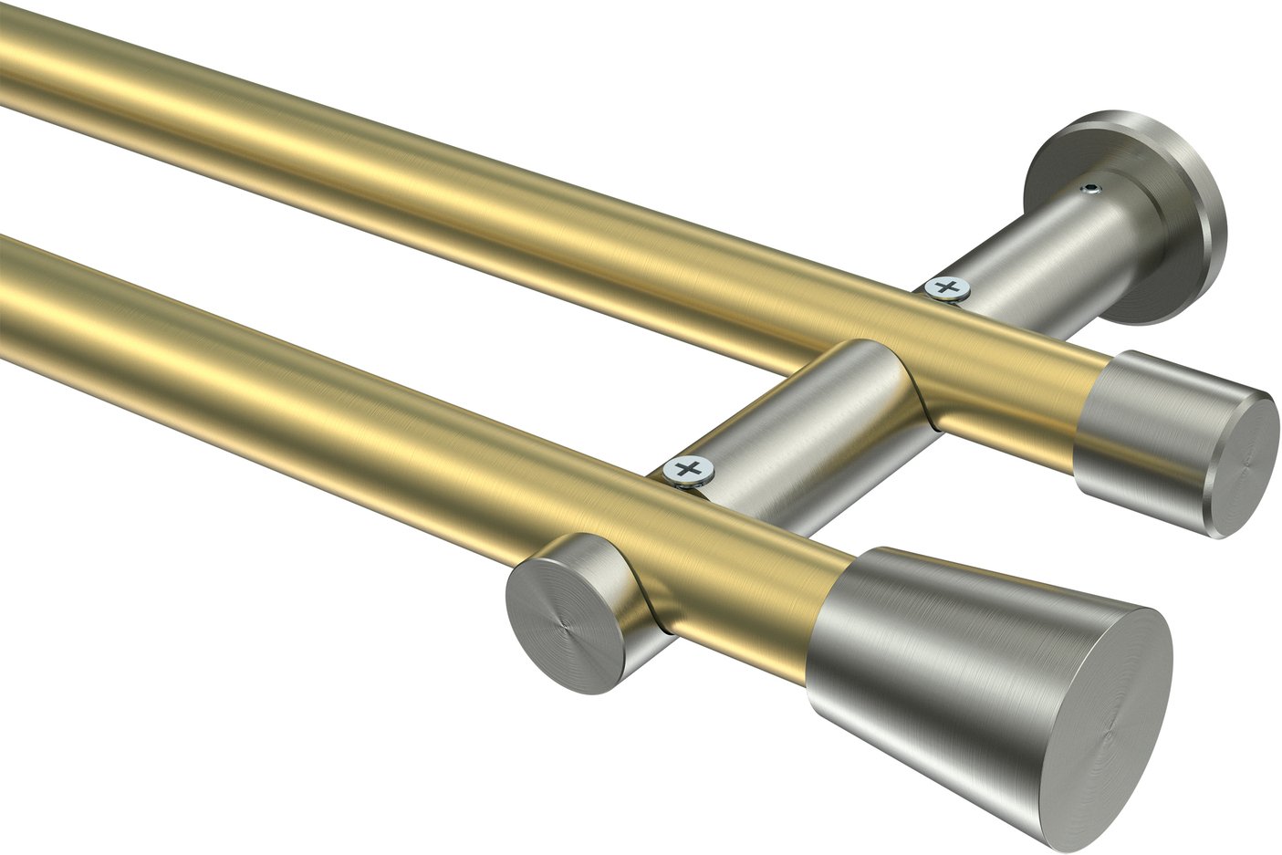 Gardinenstangen aus Messing-Optik / Edelstahl-Optik in 20 mm Ø, 2-läufig, 2-läufig, Modell PLATON - Sitra (ohne Ringe)