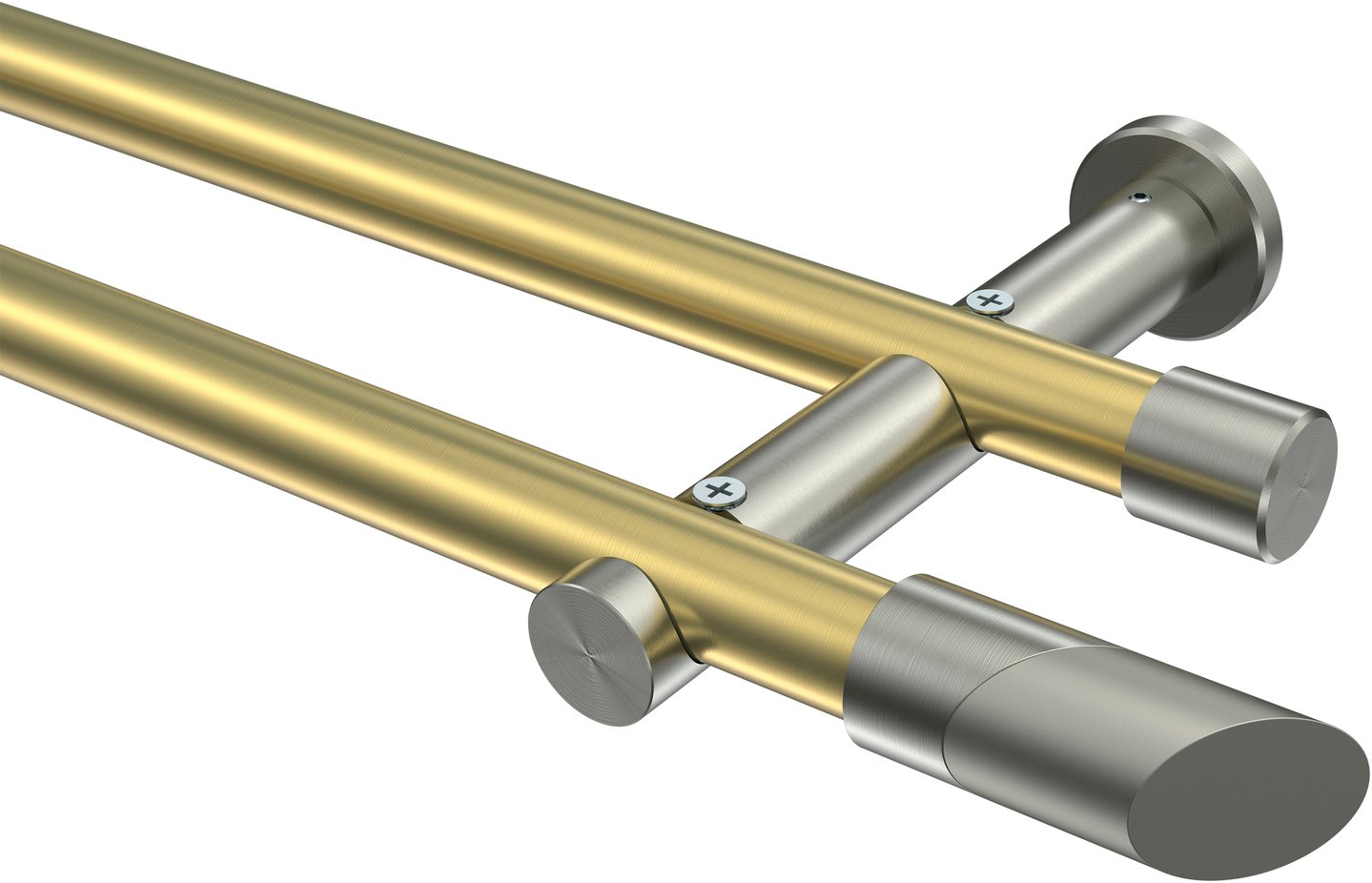 Gardinenstangen aus Messing-Optik / Edelstahl-Optik in 20 mm Ø, 2-läufig, 2-läufig, Modell PLATON - Verano (ohne Ringe)