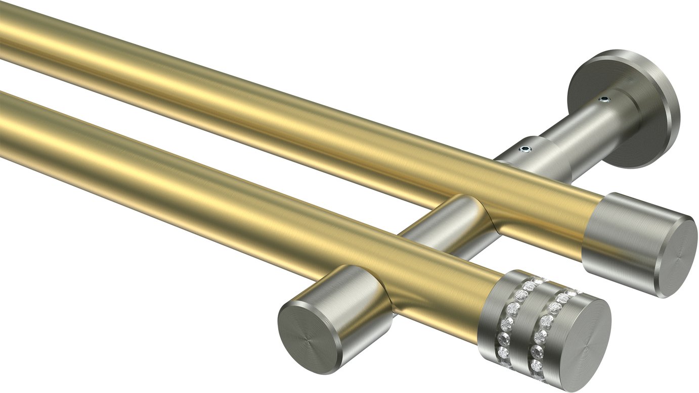 Informationen zu Gardinenstange Messing-Optik / Edelstahl-Optik 20 mm Ø 2-läufig PRESTIGE - Estana (ohne Ringe):