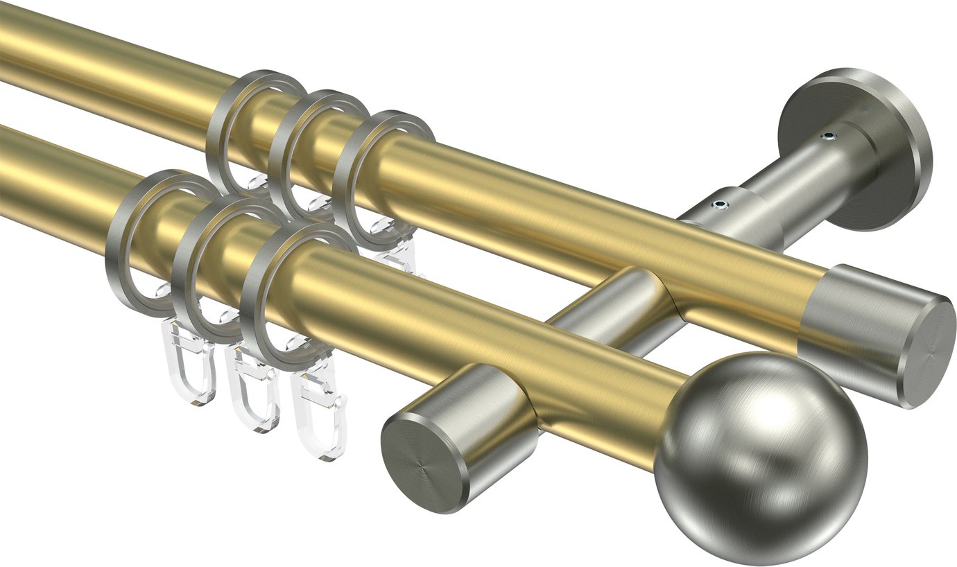 Gardinenstangen aus Messing-Optik / Edelstahl-Optik in 20 mm Ø, 2-läufig, Modell PRESTIGE - Luino