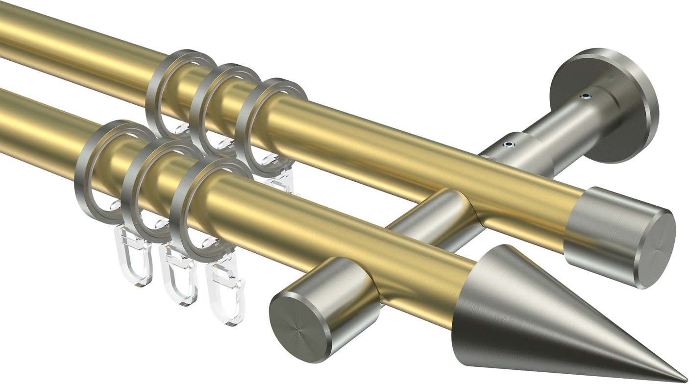 Gardinenstangen aus Messing-Optik / Edelstahl-Optik in 20 mm Ø, 2-läufig, Modell PRESTIGE - Savio