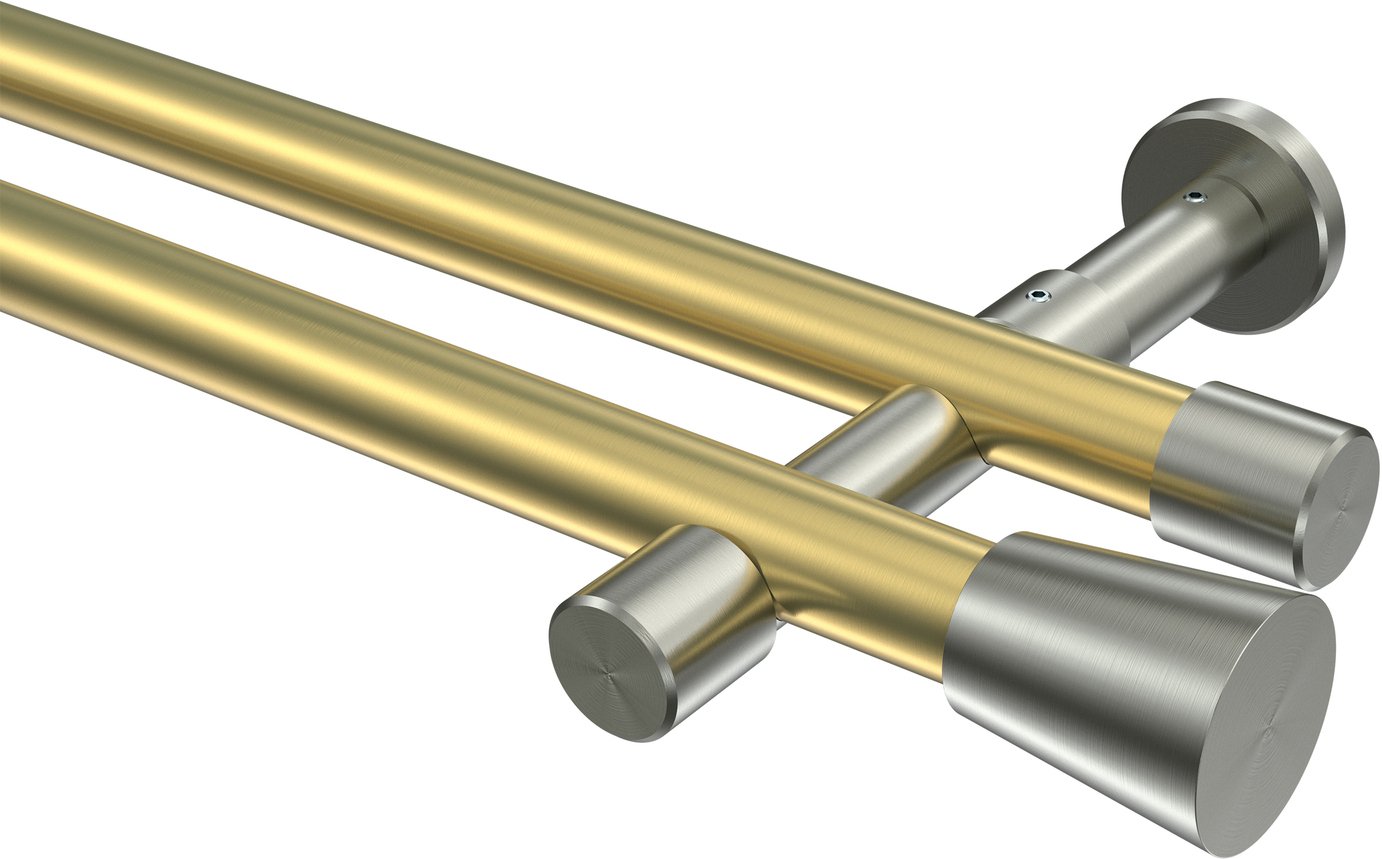 Gardinenstangen aus Messing-Optik / Edelstahl-Optik in 20 mm Ø, 2-läufig, 2-läufig, Modell PRESTIGE - Sitra (ohne Ringe)