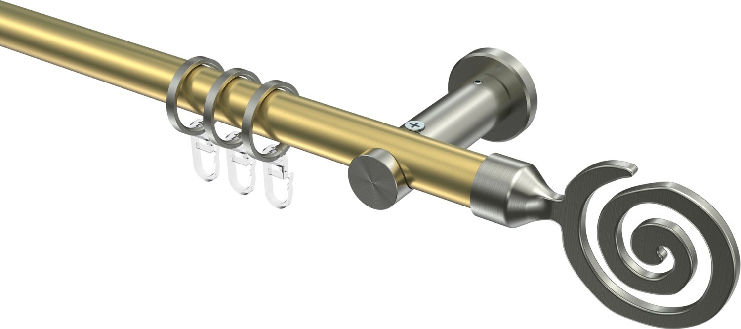 Gardinenstangen aus Messing-Optik / Edelstahl-Optik in 20 mm Ø, 1-läufig, Modell PLATON - Galaxa