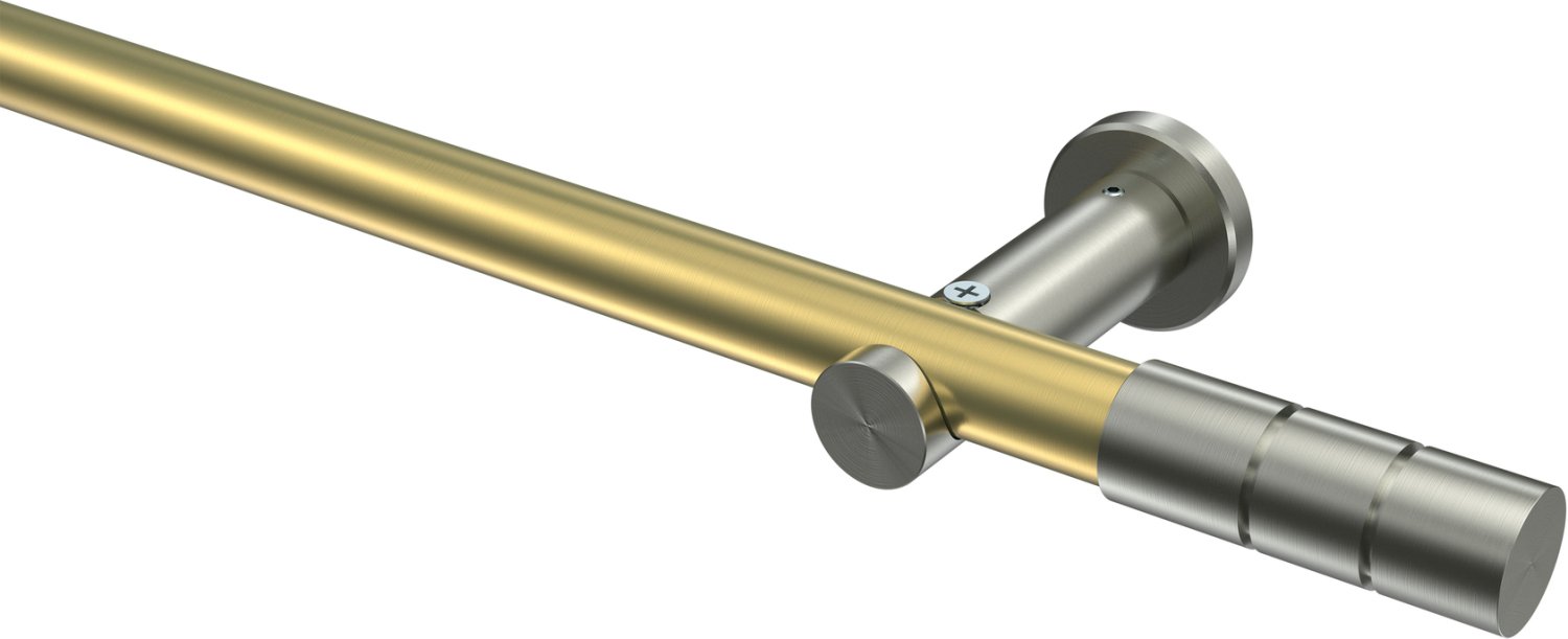 Gardinenstangen aus Messing-Optik / Edelstahl-Optik in 20 mm Ø, 1-läufig, 1-läufig, Modell PLATON - Samanto (ohne Ringe)