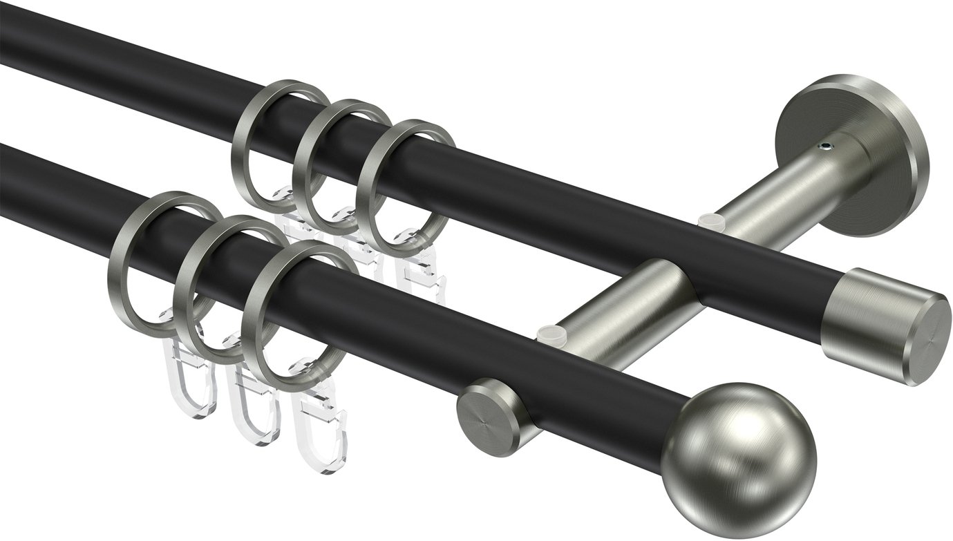 Informationen zu Gardinenstange Metall 16 mm Ø 2-läufig MEDIUM - Puros Schwarz / Edelstahl-Optik: