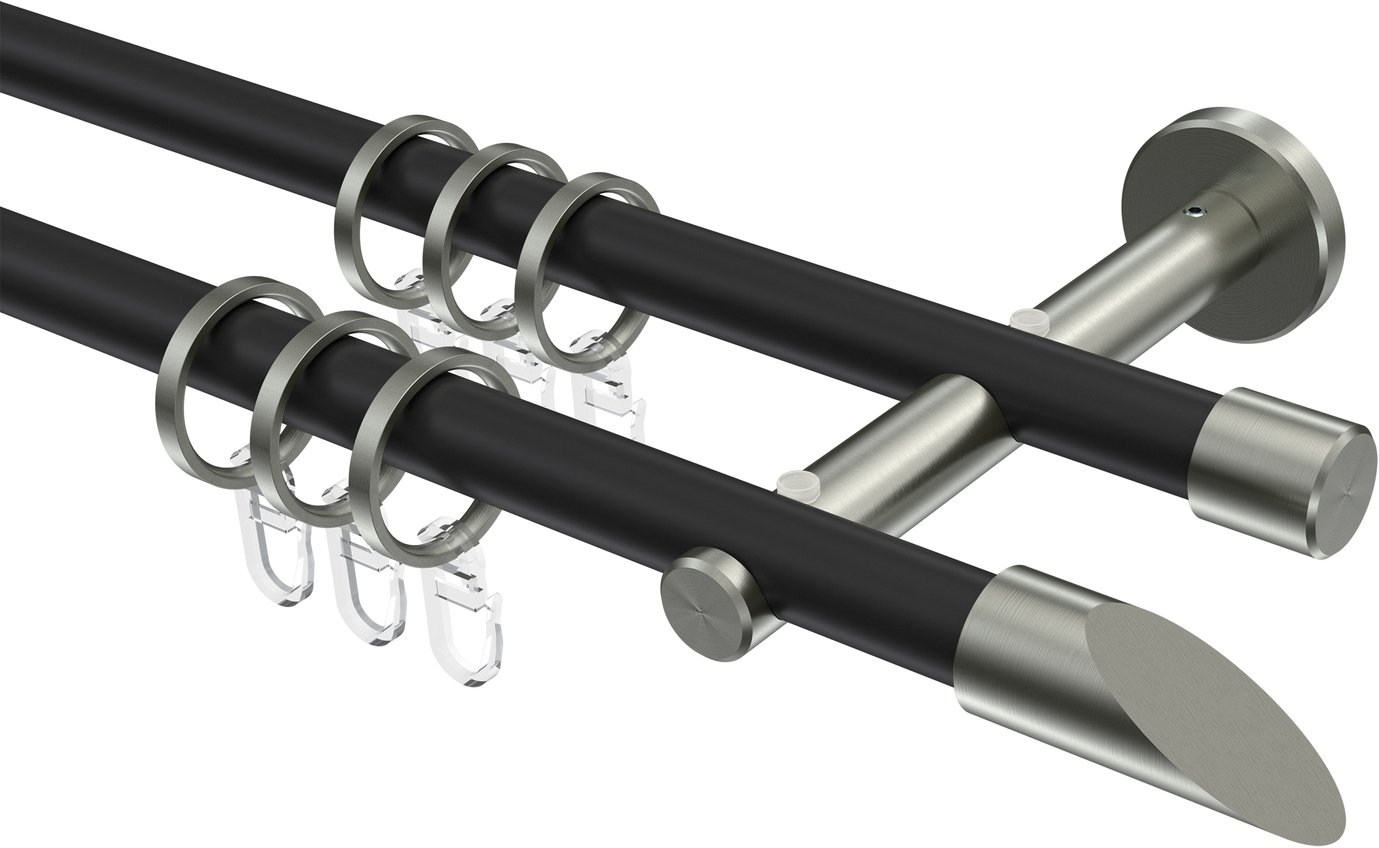 Informationen zu Gardinenstange Metall 16 mm Ø 2-läufig MEDIUM - Santoni Schwarz / Edelstahl-Optik: