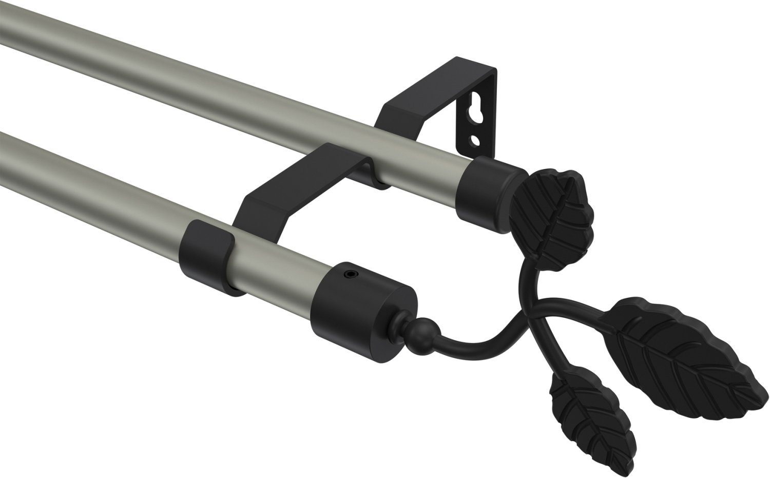 Gardinenstangen aus Metall in 16 mm Ø, 2-läufig, Modell OLYMP - Alessia Chrom matt / Schwarz (ohne Ringe)