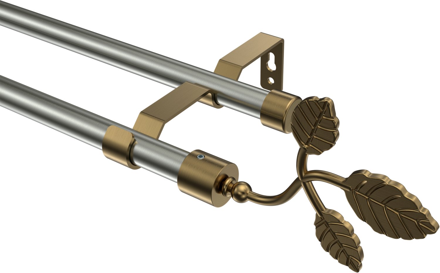 Informationen zu Gardinenstange Metall 16 mm Ø 2-läufig OLYMP - Alessia Edelstahl-Optik / Messing Antik (ohne Ringe):