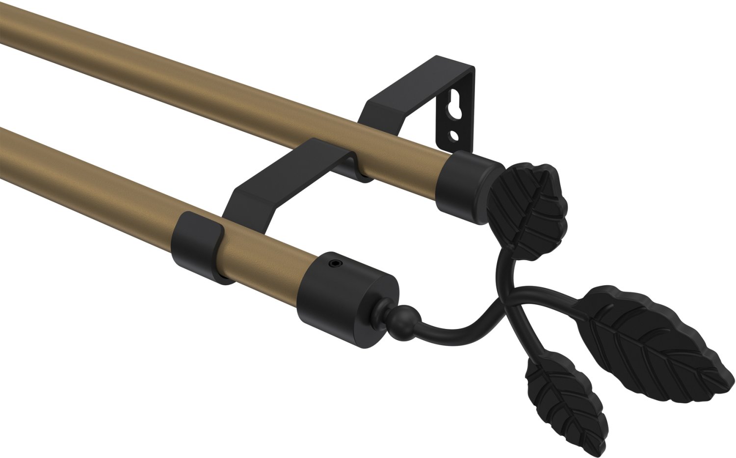 Gardinenstangen aus Metall in 16 mm Ø, 2-läufig, Modell OLYMP - Alessia Gold matt / Schwarz (ohne Ringe)